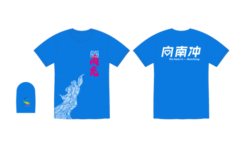 参赛服装:马拉松项目为白色、半程马拉松为蓝色,正面印嘉陵江女神与丝绸女神双形象,背面印“向南冲”标语,兼具辨识度与城市情怀;