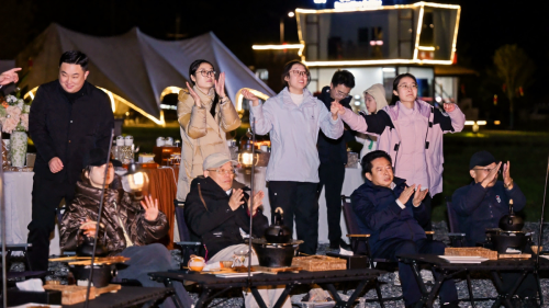 当天傍晚,光雾星野露营地的 “星野宿场” 露营派对将氛围推向高潮:嘉宾们在红叶上签名悬挂,伴着轻快的 Acoustic 音乐享用慕斯蛋糕、手冲咖啡;日落时分,篝火点燃,专业师傅现场烤制美食,嘉宾可 DIY 风味蘸料;夜晚的 “星空夜话” 环节,大家围绕 “旅途中最像‘家’的住宿”“景区‘一日隐居’体验设计”“理想民宿的核心要素” 等话题畅聊,开展主题 K 歌,在声光交织中拉近距离、凝聚共识。