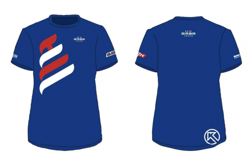 参赛服以 “森海律动・专业共生” 为理念。主色深海蓝呼应海湾碧海,红白线条抽象化森林红叶与海岸白浪,演绎 “一半森林一半海” 的赛道特质。正面几何图案兼具运动韵律与艺术感,在视觉张力中融入专业运动基因,让跑者于森林、海边奔跑时,既展现赛事特色,又享受装备的专业支撑。