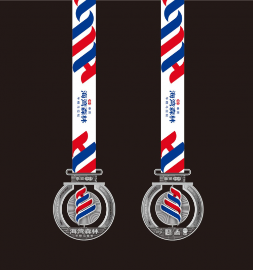 “2025奉贤海湾森林半程马拉松”奖牌以海湾与森林为核心,外圈金环象征自然与赛道循环,中间可转动的 LOGO展现运动精神的不断突破与活力。红蓝线条犹如奔跑者的速度与热情,与金色相映成荣,寓意自然、人文与荣耀的交织。