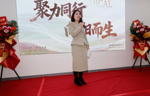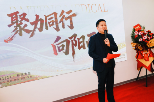 上午10:38分,乔迁仪式在热烈的氛围中拉开帷幕。百腾青年总经理吴怡霏在致辞中表示:"此次入驻九州通数字健康产业园,是公司战略布局的关键一步。园区完善的数字健康产业生态与政策支持,为企业技术创新与业务拓展提供了强劲动能,助力百腾青年成为数字健康领域的标杆企业。"
