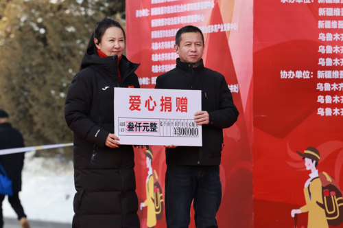 活动开始前,新疆维吾尔自治区体育总会、新疆维吾尔自治区徒步运动协会、新疆马拉松及路跑协会主席库丽娅分别为乌鲁木齐爱心园及沙依巴克区残疾人联合会进行公益捐赠。